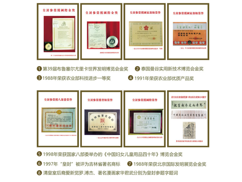 2010“皇封”品牌被中華人民共和國商務(wù)部授予,“中華老字號(hào)”稱號(hào)。并于2011年,皇封參陸年根人參取得中國、美國、歐盟有機(jī)認(rèn)證,成為人參行業(yè)中唯一一家通過歐盟、美國及中國農(nóng)業(yè)部三大權(quán)威有機(jī)產(chǎn)品檢測(cè)機(jī)構(gòu)認(rèn)證的人參企業(yè)。